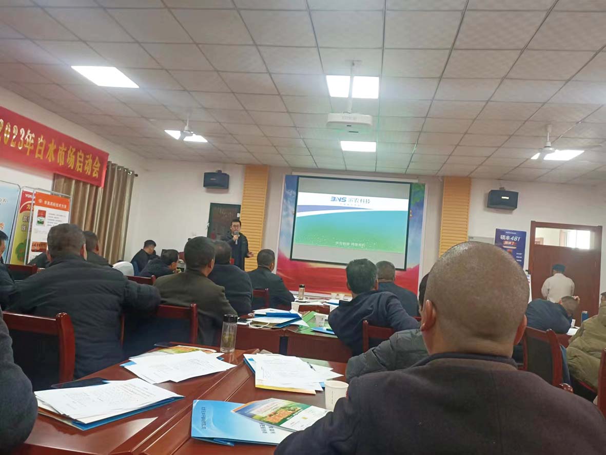 3月3日,濱農(nóng)科技產(chǎn)品推廣會(huì)在渭南市白水縣順利召開,參會(huì)終端客戶約三十余人。會(huì)上,我公司滅生性作物經(jīng)理趙巖簡(jiǎn)要介紹了企業(yè)發(fā)展規(guī)模、生產(chǎn)銷售能力、專業(yè)植保研發(fā)團(tuán)隊(duì)等內(nèi)容,并根據(jù)當(dāng)?shù)胤N植結(jié)構(gòu),重點(diǎn)講解了適合當(dāng)?shù)赜衩滋锿茝V的玉帥、玉立方的產(chǎn)品賣點(diǎn)及使用技術(shù)。針對(duì)當(dāng)?shù)毓麍@滅生除草,分析交流了市面上常見產(chǎn)品的特點(diǎn)及差別,對(duì)比重點(diǎn)產(chǎn)品濱農(nóng)百時(shí)利的優(yōu)勢(shì),解答了終端商關(guān)心的藥效及安全性問題。并通過各地試驗(yàn)圖片、視頻向大家展示了產(chǎn)品濱農(nóng)百時(shí)利速效除草、耐低溫的特點(diǎn)。通過此次會(huì)議,參會(huì)客戶充分了解了公司實(shí)力和規(guī)模,對(duì)推廣銷售濱農(nóng)除草劑產(chǎn)品更有信心。